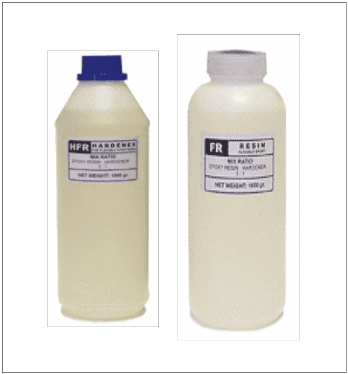 Вывод графического изображения на виниловую пленку наносят подходящим для дальнейшей заливки способом (шелкография, струйная печать и др.) на самоклеющуюся пленку. Дальше производим надсечку самоклеящейся пленки по контуру напечатанных подложек на режущем плоттере Roland Gamm-1 Servo и снятие облоя. Облой – это часть поля виниловой пленки, отсечённая плоттером, т.е. оставшаяся часть плоскости листа не занятая подложками. Перед заливкой компаундом, аккуратно, начиная с угла, отделяем непосредственно виниловую плёнку - облой от силиконизированной бумаги, при этом вырезанные подложки остаются на листе. Затем заливаем подложки компаундом, который при оптимальной дозировке равномерно заполняет подложки, в пределах границ контуров, не выливаясь на силиконизированную бумагу, с которой снята пленка, т.н. облой. Расстояние между контурами подложек должны быть не менее 3-4 мм. Иначе, смола будет заливаться на соседние подложки за счет ее поверхностного натяжения.