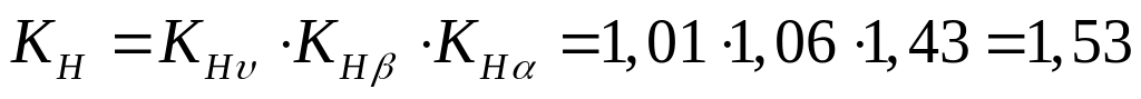 где КНυ=1,01 – коэффициент учитывает внутреннюю динамику нагружения по /1, таблица 2.6/.