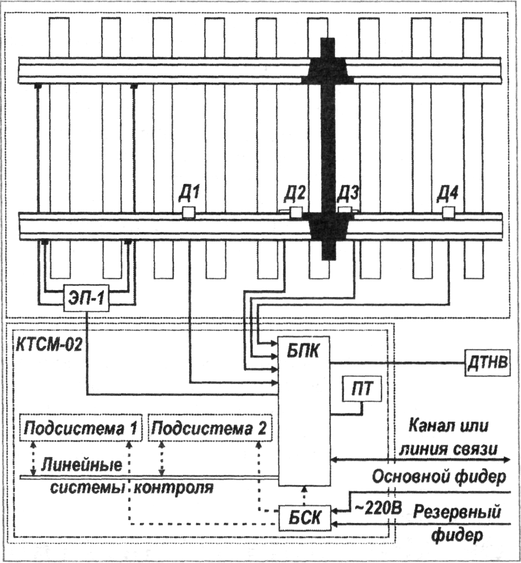 На рисунке 4.5 представлена структурная схема комплекса КТСМ-02. Элементы КТСМ указаны сплошными линиями, подсистемы, поставляемые по отдельному заказу, – штриховыми.