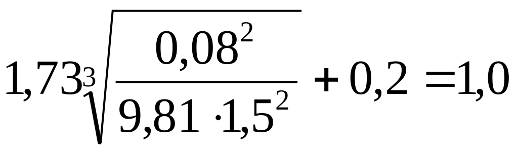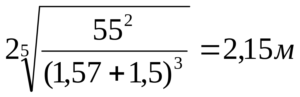 ξ – коэффициент сопротивления, ξ = 2,2 / кп2 + 1 = 3,2.