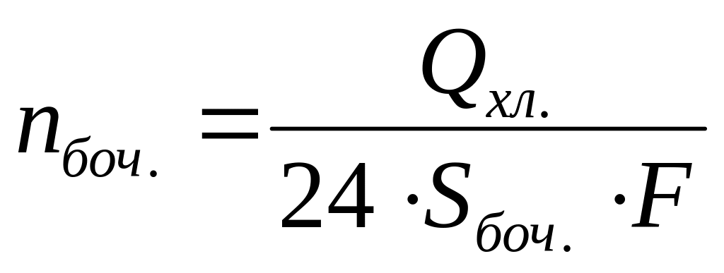 Хлор поступает на станцию обработки воды в бочках. Съем хлора с одной бочки принимается Sбоч.=3 кг/ч с квадратного метра боковой поверхности бочки. Необходимое количество бочек для хлора