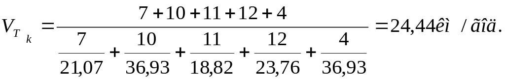 де VВ,Vх – середні швидкості руху з вантажем і без вантажу в окремих умовах експлуатації, км/год;