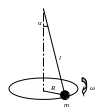 Кулька масою m підвішена на мотузці довжиною l і обертається навколо вертикалі з частотою n. Кут між вертикаллю та мотузкою α. При цьому мотузка розтягується з силою N. Знайти _____ , використовуючи наступні вихідні дані: