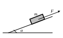 Тіло масою m піднімається рівномірно по похилій площині силою F, паралельною площині. Кут нахилу площини α, коефіцієнт тертя f.