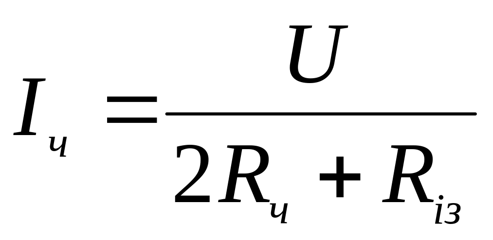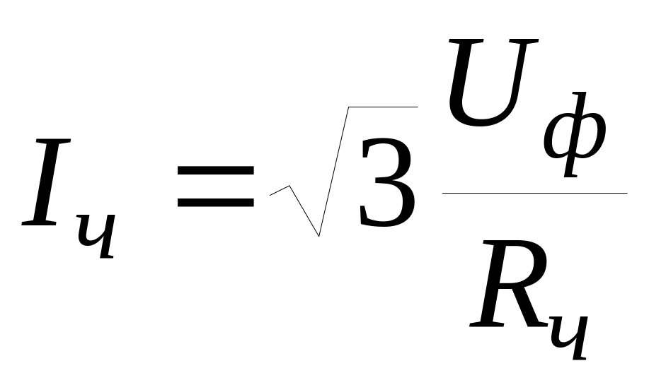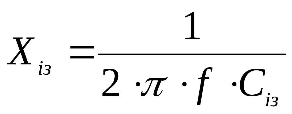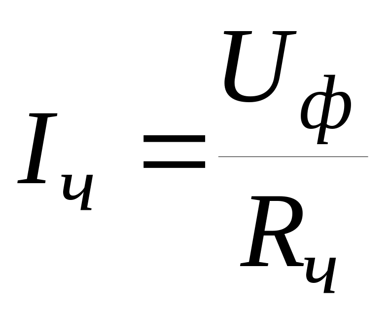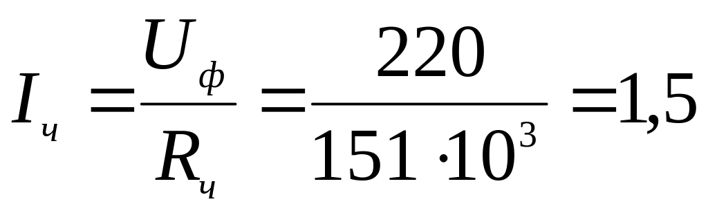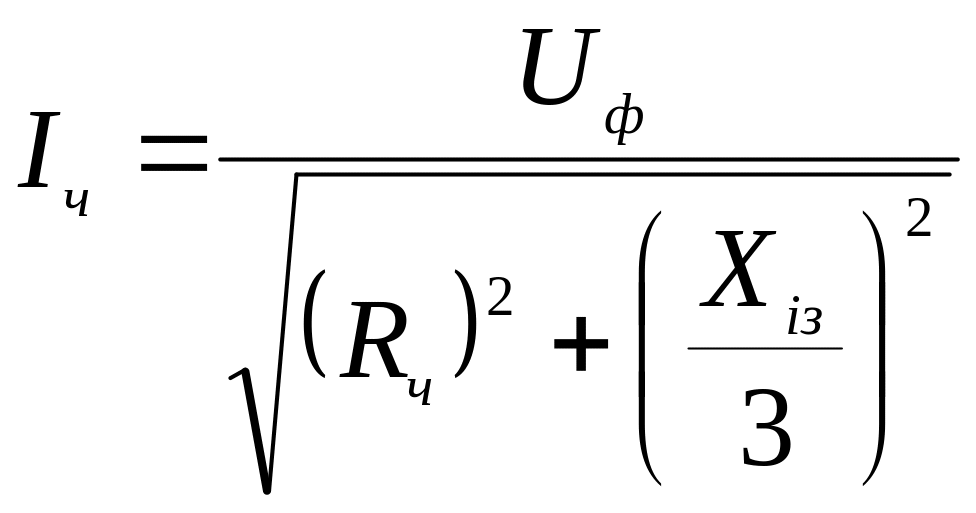 В еквівалентній електричній схемі опори і ємності всіх трьох фаз включаються паралельно і утворюють для струму Iч ланцюг з активного опору 1/3Rіз і ємнісного – 1/3Хіз (рисунок 5.4б). При цьому