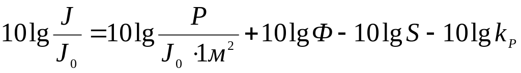 При дії джерела шуму із звуковою потужністю Р (Вт) інтенсивність шуму J (Вт/м2) у розрахунковій точці визначається вираженням (рисунок 4.1 а):