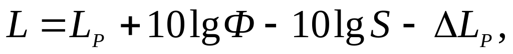 Проробивши ту ж операцію, що й у попередньому випадку, одержимо наступне вираження для визначення рівня шуму в розрахунковій точці (дБ):