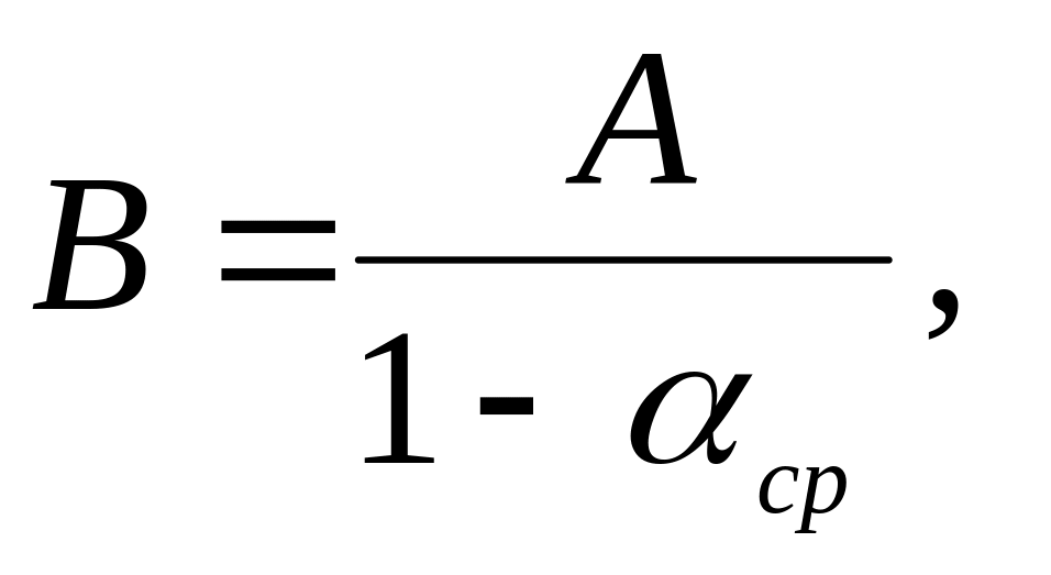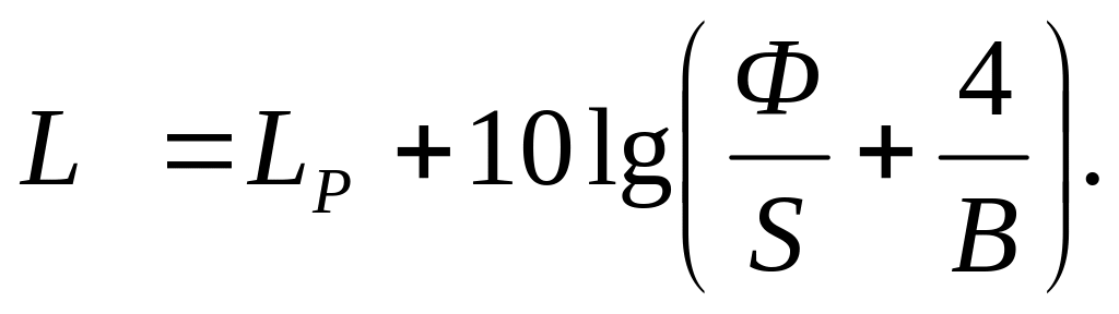 У виробничих приміщеннях величина аср рідко перевищує 0,3 – 0,4. У цих випадках постійна приміщення В може бути з деякою погрішністю прийнята рівній еквівалентної площі поглинання А, тобто В A.