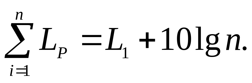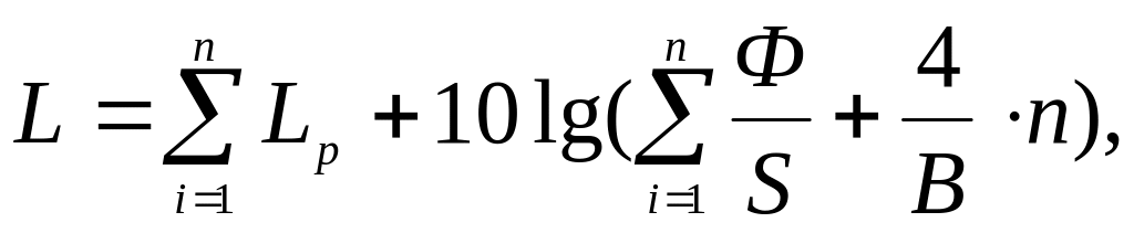Якщо є кілька джерел шуму в приміщенні, то рівень шуму на робочому місці визначають по формулі: