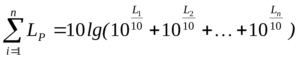 Сумарний рівень звукової потужності (дБ) при одночасній роботі кількох джерел різної звукової потужності можна визначити по формулі: