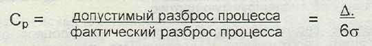 Позволяет выполнить оценку (анализ) точности и стабильности производственных процессов. Индексом воспроизводимости производственного процесса (ПП), предполагая, что значение параметра ПП (детали) распределено нормально, называют характеристику Ср:
