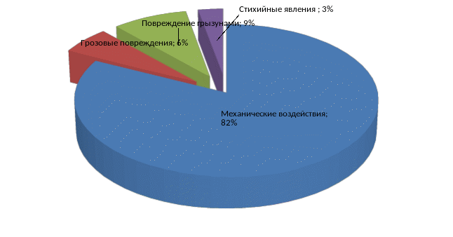 - механические повреждения ОК при выполнении строительно-монтажных работ сторонними организациями в пределах охранных зон кабельной линии, также в результате актов вандализма;