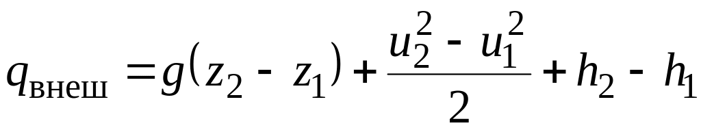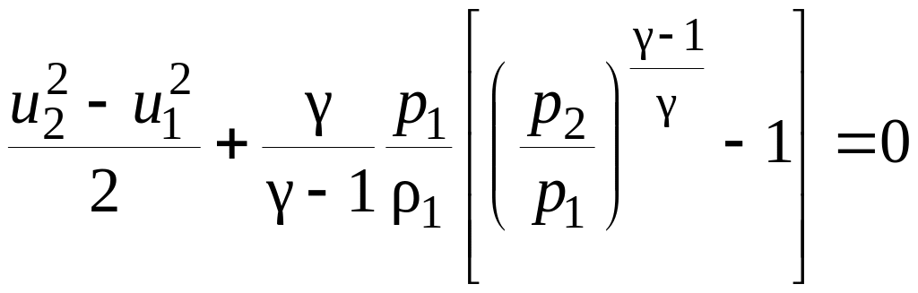 В случае адиабатного течения и неизменной потенциальной энергии g(z2 – z1) уравнение Бернулли имеет вид