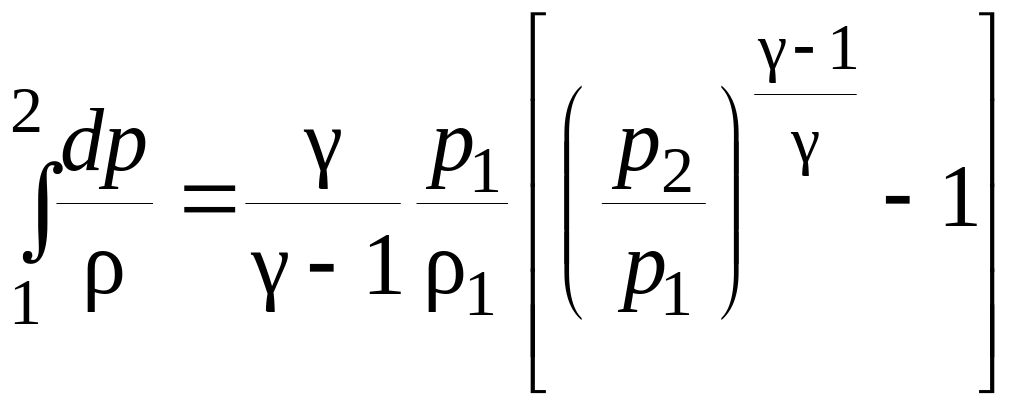 В случае, когда плотность жидкости на участке 1-2 меняется незначительно или жидкость считается несжимаемой, интеграл в уравнении Бернулли равен