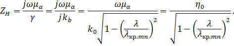 Из (4.35) следует, что длина волны в волноводе не равна длине волны в свободном пространстве: