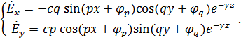 Запишем составляющие воля волны . Для этого в выражениях (4.28 – 4.29) и (4.31 – 4.32) для