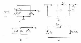 а— с двойной автотрансформаторной связью; б —с трансформаторной связью; в—с емкостной связью; г — эквивалентная
