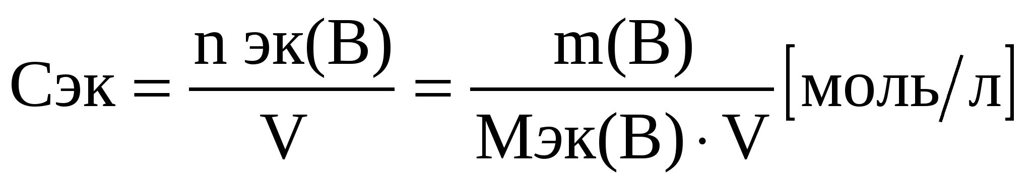 Для расчета эквивалентного веса соли, кислоты или основания молекулярный вес данного вещества делят на общее количество единиц валентности положительно или отрицательно валентной части молекулы.
