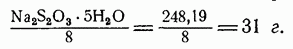 Тот же тиосульфат натрия, окисляясь бромом, теряет 8 электронов — грамм-эквивалентный вес его в этой реакции равен: