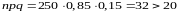Решение: n = 250 > 100; k = 213; p = 0,85; q = 0,15;
