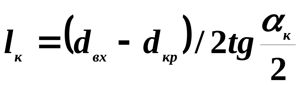 Кут розкриття конфузора не повинен бути більш ніж 40о і звичайно складає αк=20...30о. Довжина конфузора