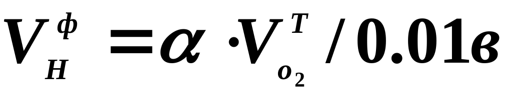 Фактичні витрати повітря з урахуванням його збагачення киснем (в,%) та коефіцієнту надміру α становлять:
