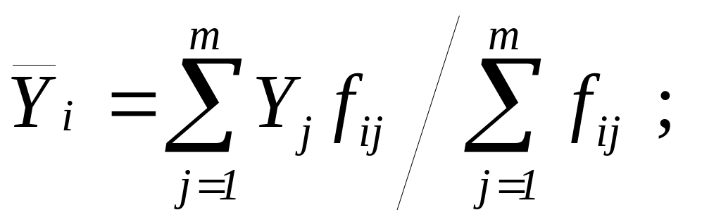 В итогах корреляционной таблицы по строкам и столбцам приводятся два распределения – одно по X, другое по Y. Рассчитаем для каждого Xi среднее значение Y и для Yj среднее значение X.
