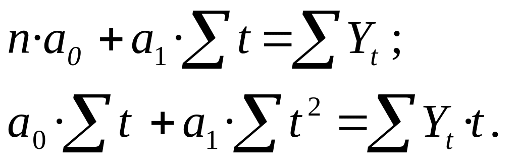 Для определения параметров линейной трендовой модели (а0 и а1)следует решить систему из двух уравнений: