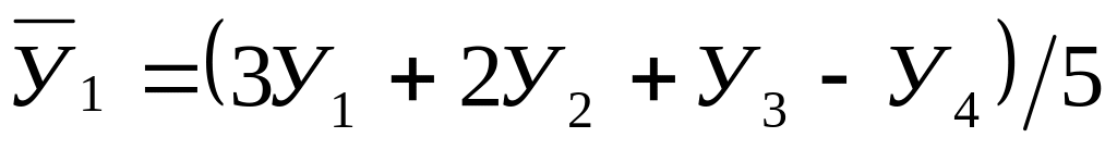 Недостаток методики сглаживания скользящими средними состоит в условности определения сглаженных уровней для точек в начале и конце ряда. Если необходимо, то их получают специальными приемами. Так, при сглаживании по трем точкам выровненное значение в начале ряда рассчитывается по формуле