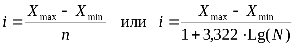 В случае равных интервалов величина интервала может быть определена как