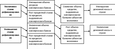 изменение ставки рефинансирования или учётной ставки. Если ЦБ проводит экспансионистскую денежно-кредитную политику, то он устанавливает низкую учётную ставку, т.е. позволяет коммерческим банкам создавать лишние деньги. Если ЦБ проводит рестрикционную политику, то он повышает учётную ставку, тем самым, сокращая ссуды коммерческим банкам. Изменение учётной ставки наименее действенный инструмент денежно-кредитной политики.