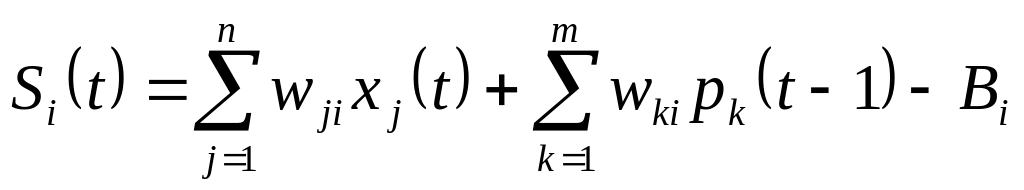 Взвешенная сумма входов i-ого нейрона промежуточного слоя: