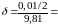 Например, для нормального ускорения падающих тел g = 9,81 м/с2, единица младшего разряда равна 0,01, следовательно, погрешность записи числа 9,81 будет равна