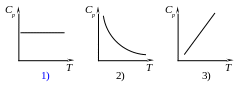 Молярная теплоёмкость при постоянном давлении зависит от температуры газа согласно графику (в области обычных температур)