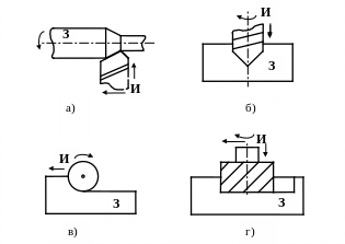 а) точение, б) сверление, в) шлифование, г) фрезерование.