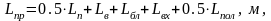 Lпр = 0,5*860+200+100+350+0,5*1050 = 2505, м;
