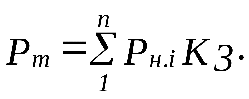 При числе электроприемников в группе больше трех, но при эффективном их числе меньше четырех, расчетная нагрузка принимается равной сумме произведений номинальных мощностей на характерные для этих приемников коэффициенты загрузки Кз , т.е.