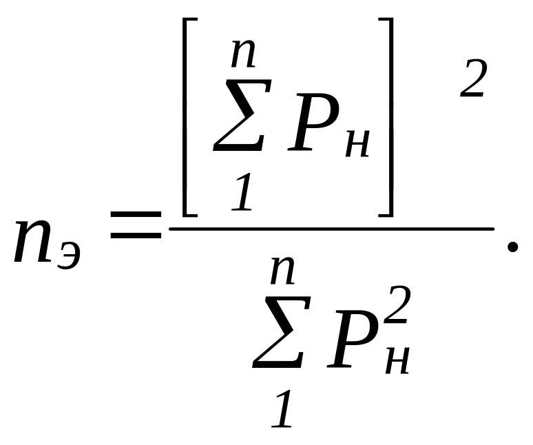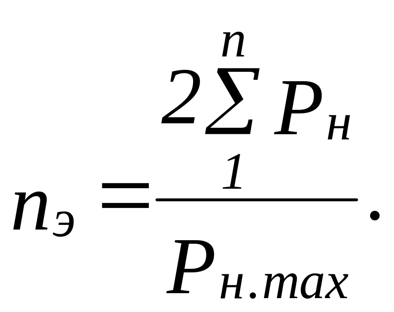 Эффективное (приведенное) число ЭП - это такое число однородных по режиму работы ЭП одинаковой мощности, которое дает то же значение расчетного максимума Рм , что и группа ЭП, различных по мощности и режиму работы