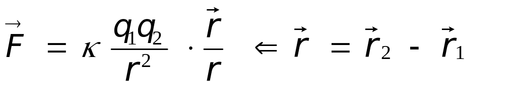÷; сила F направлена по прямой между ЭЗ (рис. 1 - для одинаковых по знаку - отталкивание, для противоположных ЭЗ - притяжение). В СИ коэффициент пропорциональности