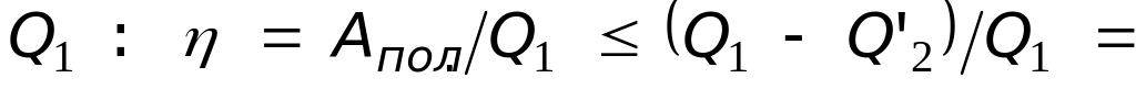 Коэффициентом полезного действия h называют отношение полезной работы к энергии, к-рое рабочее тело получает от нагревателя, т.е. к количеству теплоты
