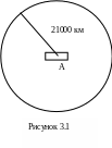 Спутниковая трилатерация. Точные координаты точки на земной поверхности могут быть вычислены по измеренным расстояниям от группы спутников (если их положение в космосе известно). Допустим, мы не знаем координат точки на земной поверхности, где находимся и пытаемся их определить, используя для этой цели только один спутник, находящийся в настоящий момент времени на расстоянии 21000 км. от нас (рисунок 3.1).