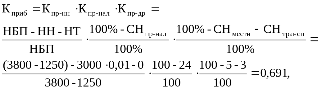 С учётом налоговой нагрузки от выручки общий коэффициент выхода для прибыли составит: