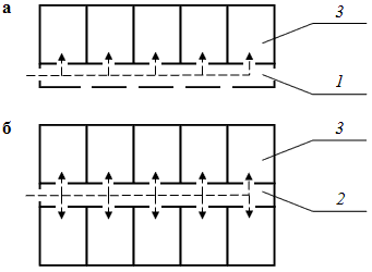Анфиладная (прямоугольная) схема: А - прямоугольная; Б – центричная