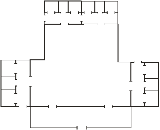 - Зальная схема – имеется одно помещение больших размеров (зальное), обычно располагающееся в центре здания и помещения меньших размеров, которые группируют вокруг зального (одно - или многозальная планировочная схема используется при проектировании театров и кинотеатров, рынков, торговых центров, спортивно-зрелищных предприятий, промышленных и сельскохозяйственных объектов)