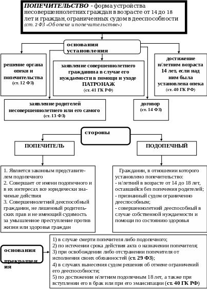 - эмансипация (объявление н/летнего полн. дееспос-м) по реш-ю ООП или суда (при отсутствии согл-я з/предст-лей или отказе ООП):