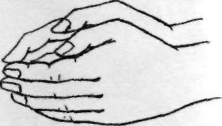 Исходное положение. Обе ладони поставлены на ребро и соединены «ковшиком», большие пальцы прижаты к ладоням.