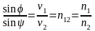 где φ – угол падения;ψ – угол преломления; v1 – скорость света в среде 1;