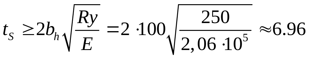 Катет зварного шва визначаємо на ділянці зі зміною перерізу пояса без урахування місцевого навантаження між ребрами жорсткості за формулою