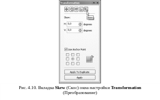 щелкните мышью на кнопке Skew (Наклонить) окна настройки Transformation (Преобразование), если окно настройки Transformation (Преобразование) открыто на экране на другой вкладке.