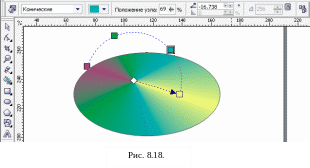 Пример создания многоцветной градиентной конической заливки имеющей два дополнительных промежуточных узла, представлен на рис. 8.18.